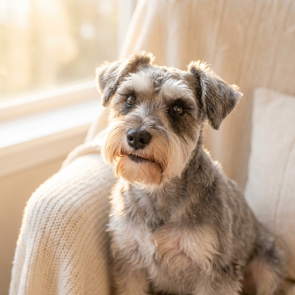 19世紀ドイツで農場のネズミ捕りや番犬として活躍。スタンダード・シュナウザーを小型化して誕生しました。特徴的な眉毛とひげは、単なる見た目ではなく、獲物から顔を守るための実用的な毛並みです。